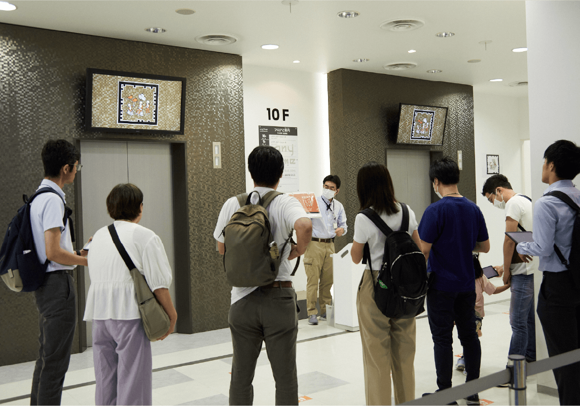さっそくエレベーターに乗り込み目的の階へ。と、突然、不自然な揺れが起こり、照明がダウン。「ただいま大きな地震がありました。注意して行動してください」と緊迫したアナウンスに心拍数が高まっていくのが分かりました。