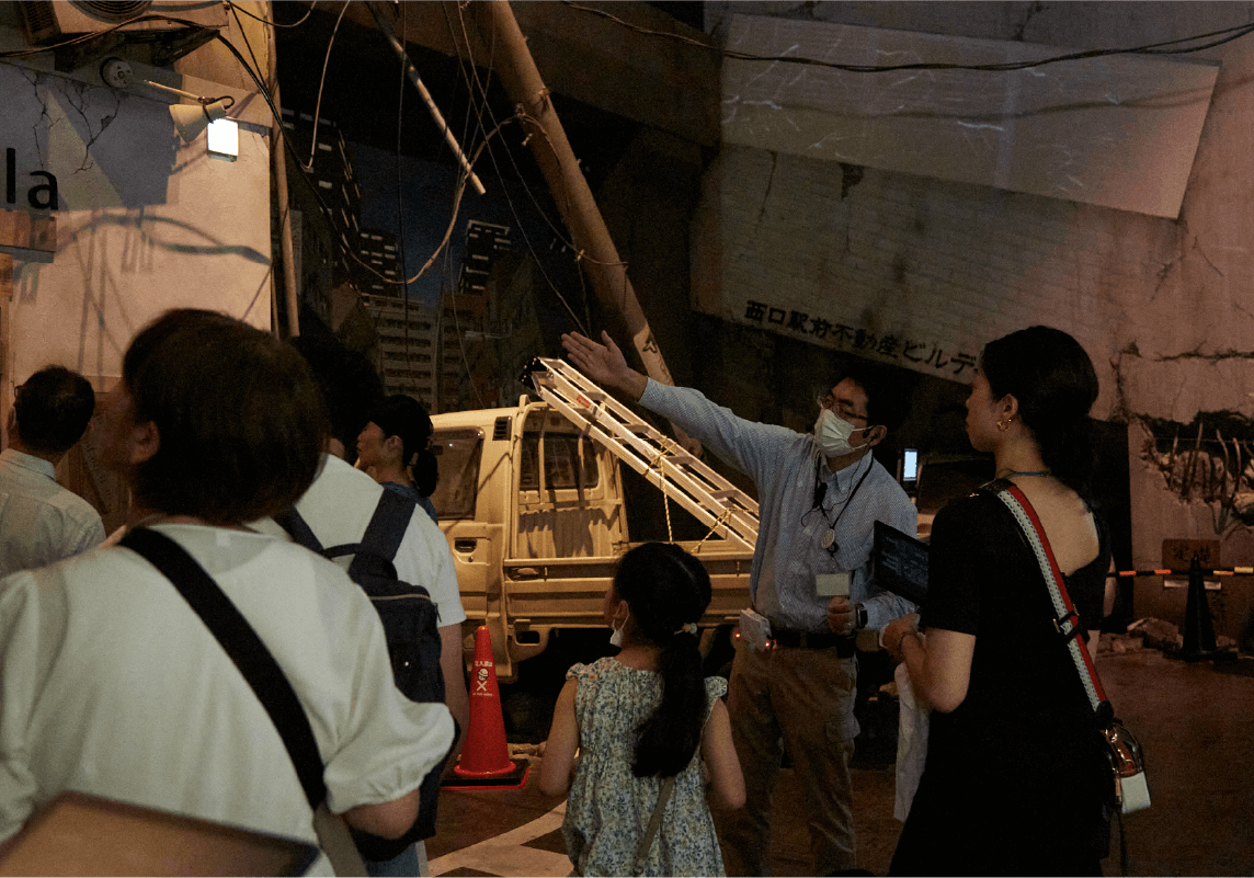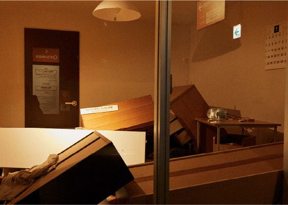 次のエリアでは、「首都直下地震のイメージ映像と、さまざまな地震を想定して行われた実験の映像」や実際の避難所の様子が紹介されていました。漠然としていた「被災」が、よりリアルに浮かび上がってきました。