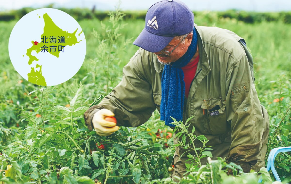 北海道の西岸に位置する余市町。農家の次男としてこの土地に生まれた水尻(みずしり)宏明さん(63歳)。日本で唯一、この畑で『爽果(さやか)』という品種のトマトを栽培しています。