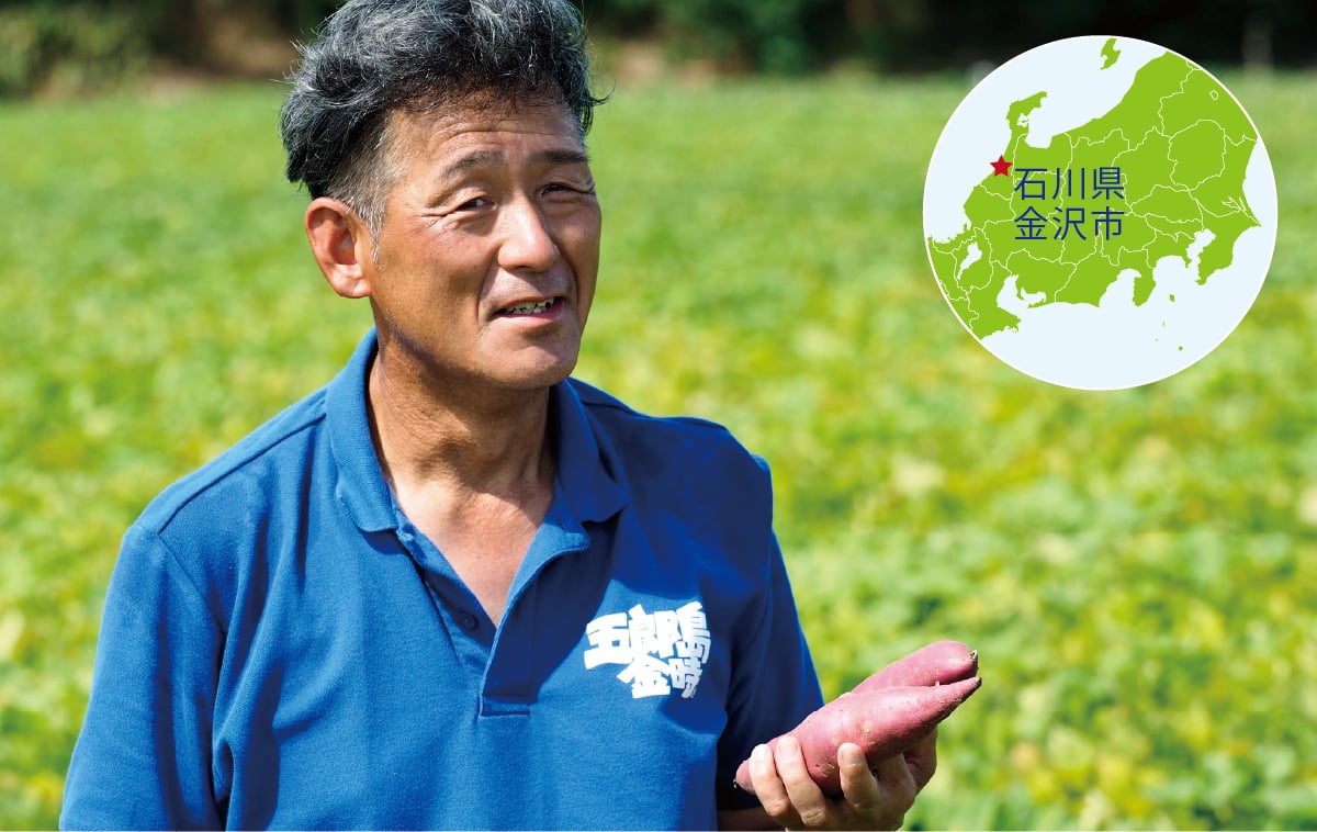 中でも『五郎島金時』は、300年以上もの歴史を誇る伝統野菜。そんな希少な伝統野菜を守り続けているのが、〈JA金沢市・五郎島さつまいも部会〉の農家の皆さん。その部会長を務める忠村(ただむら)哲二さんを、炎天下の畑に訪ねました。
