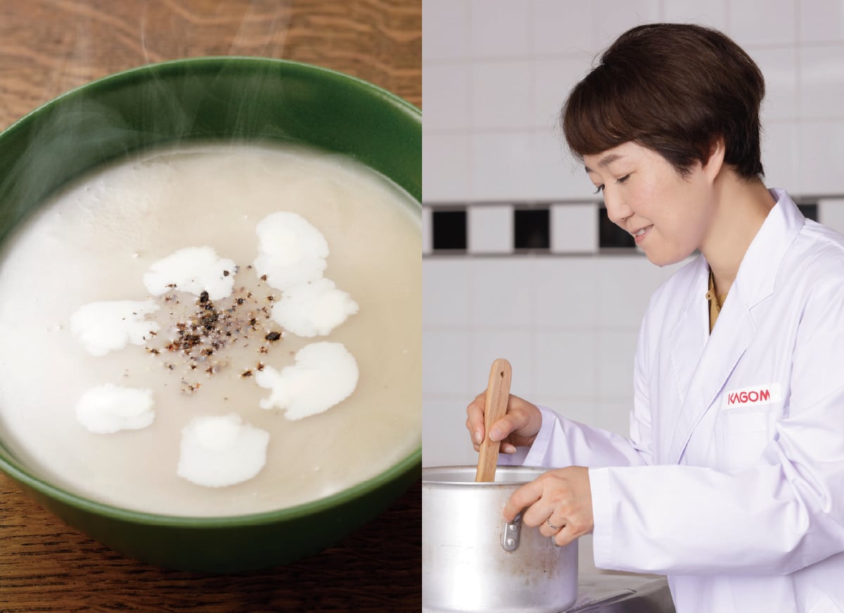 商品づくりを担当した北川麻美子(カゴメ商品開発本部)は「初めて食べたときのほくっとした感じと、どこか温かみのある味わいは今でも忘れません」と、すぐにこの『五郎島金時』をポタージュにすることを思いついたといいます。
