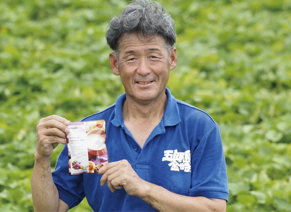 「カゴメさんの秋のポタージュに使ってもらっていることは、とてもありがたい。お客さまに喜んでもらえると、なおさらうれしい」と忠村さんは満面の笑顔で語ります。