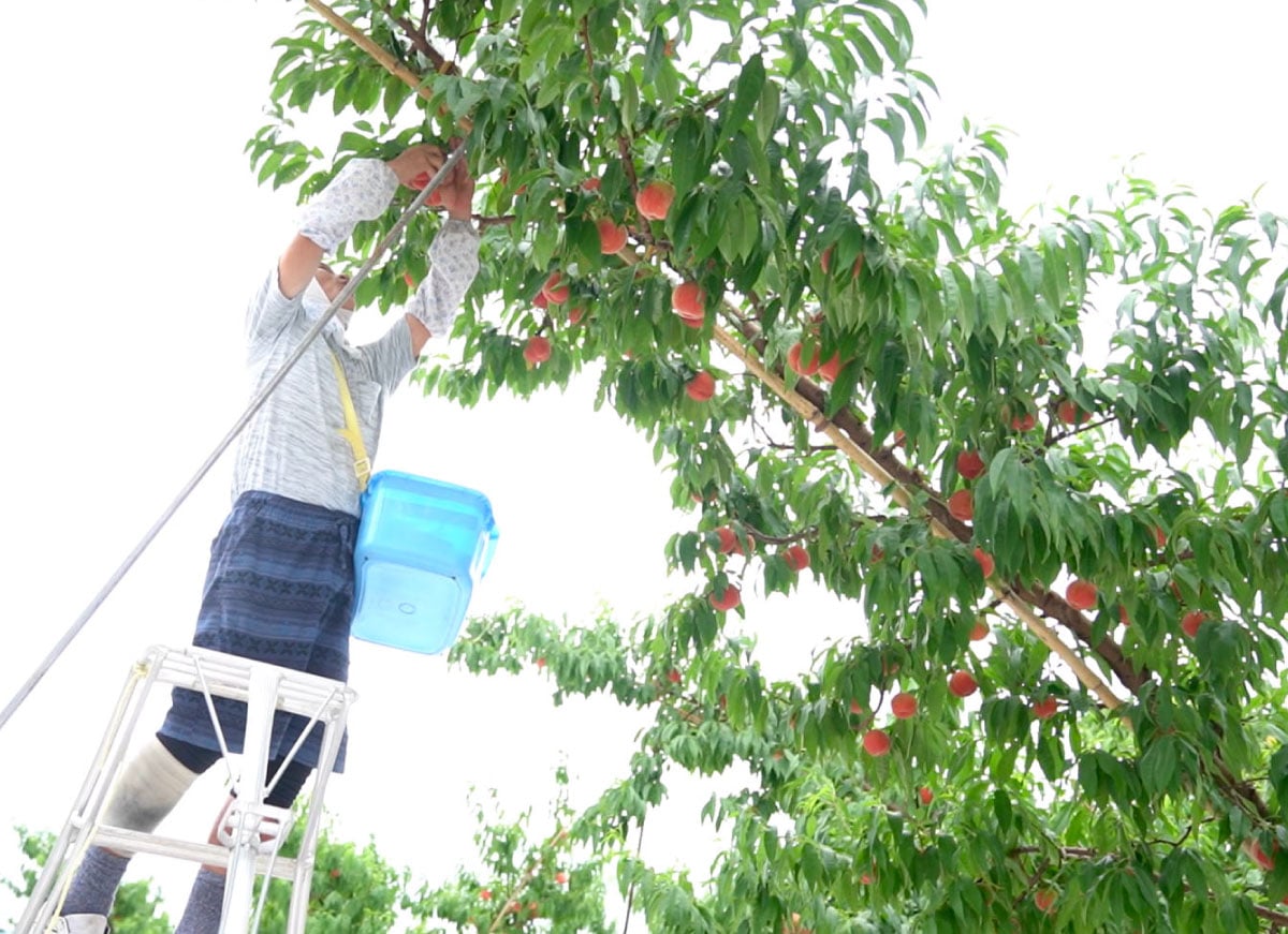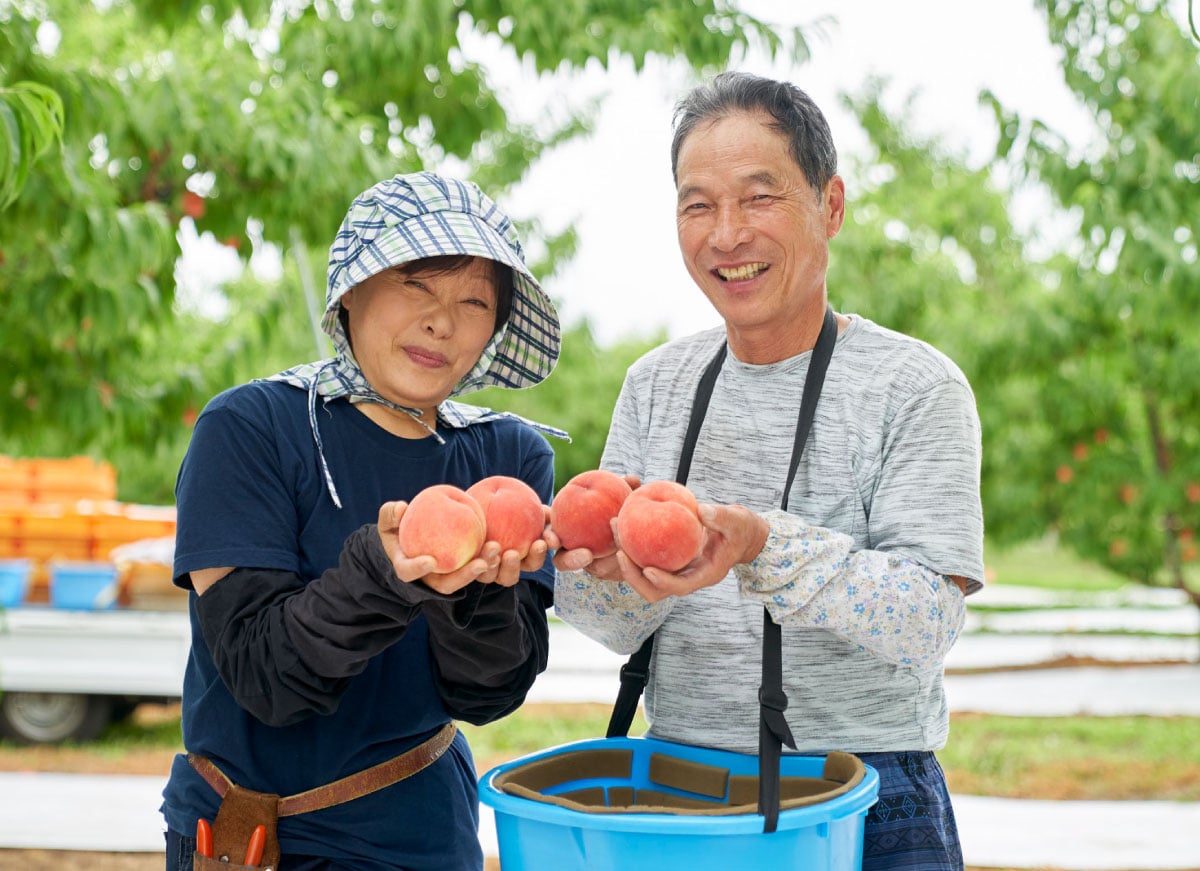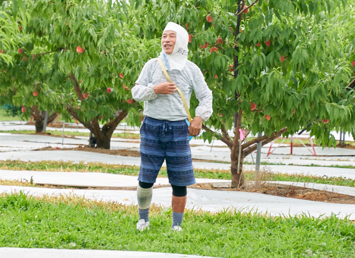 桃と言えば、山梨県や福島県、長野県や山形県あたりが産地として有名ですが、そんな中でもここ福島県の桑折町は、1994年から現在に至るまで、30年以上に亘って皇室に桃を献上し続けているという、知る人ぞ知る桃の名産地。日本でも珍しい果実専門の農協「伊達果実農業協同組合」では理事も務め、農協の誰もが認める桃の栽培名人として推薦されたのが亀岡さんでした。