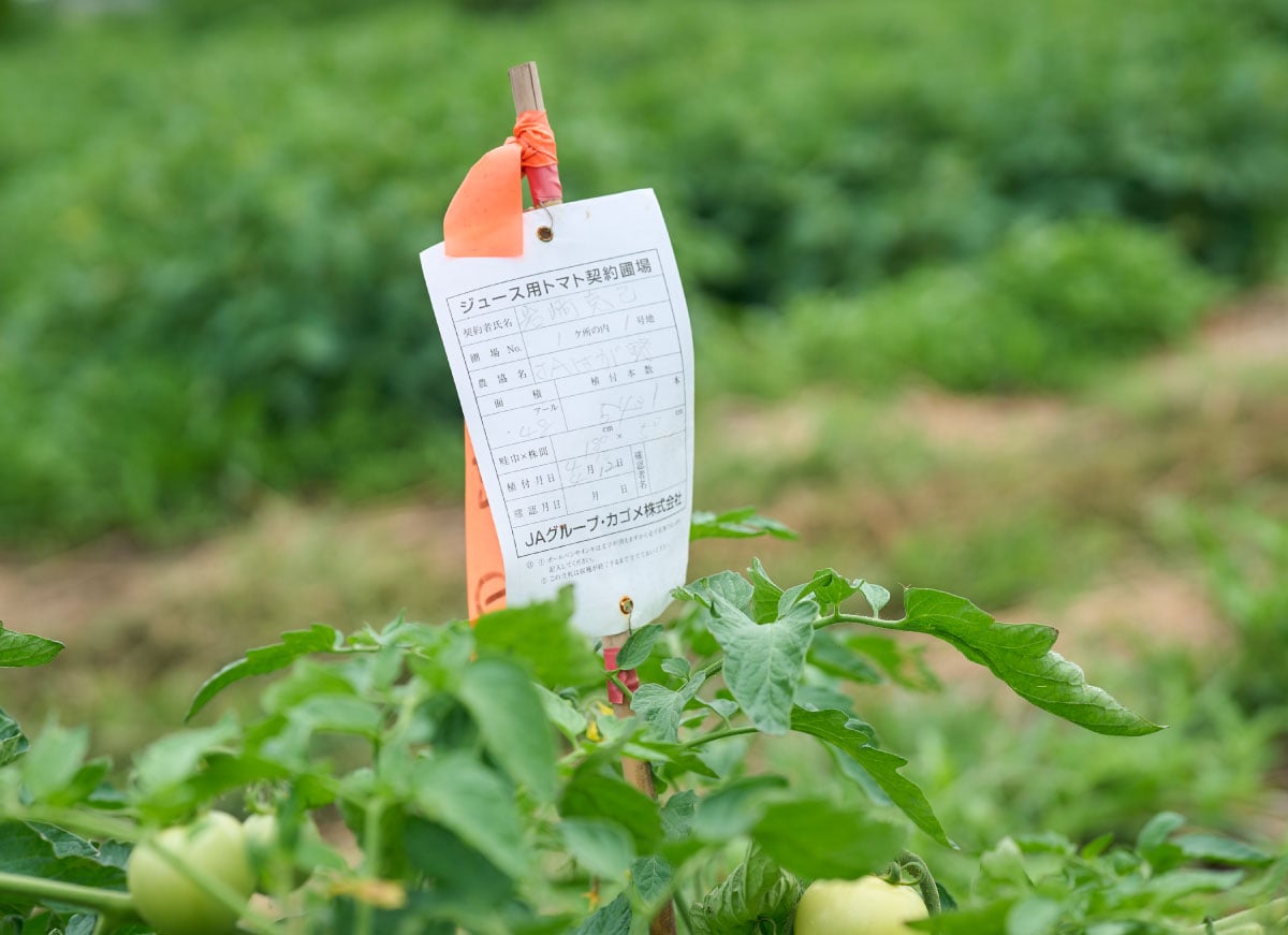 「皆さん、加工用のトマトは食べたことがないと思いますが、実はジュースにして美味しいというカゴメの加工用トマトは、芯までねっとり濃厚でとても甘い。生食用のトマトの場合、真ん中にゼリー状のところがあって、よく“青くさい”とか言われますが、加工用のトマトにはそれがなくてスッキリ爽やか、だけど甘いんです。収穫を手伝いに来てくれる人の中には、出荷できないトマトを「持って帰りたい」という人もいるほど。