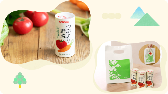「つぶより野菜」にはリサイクル可能な紙容器を採用。間伐材を含む国産材料を30%含んだこの容器は日本の森林の保護にもつながっています。