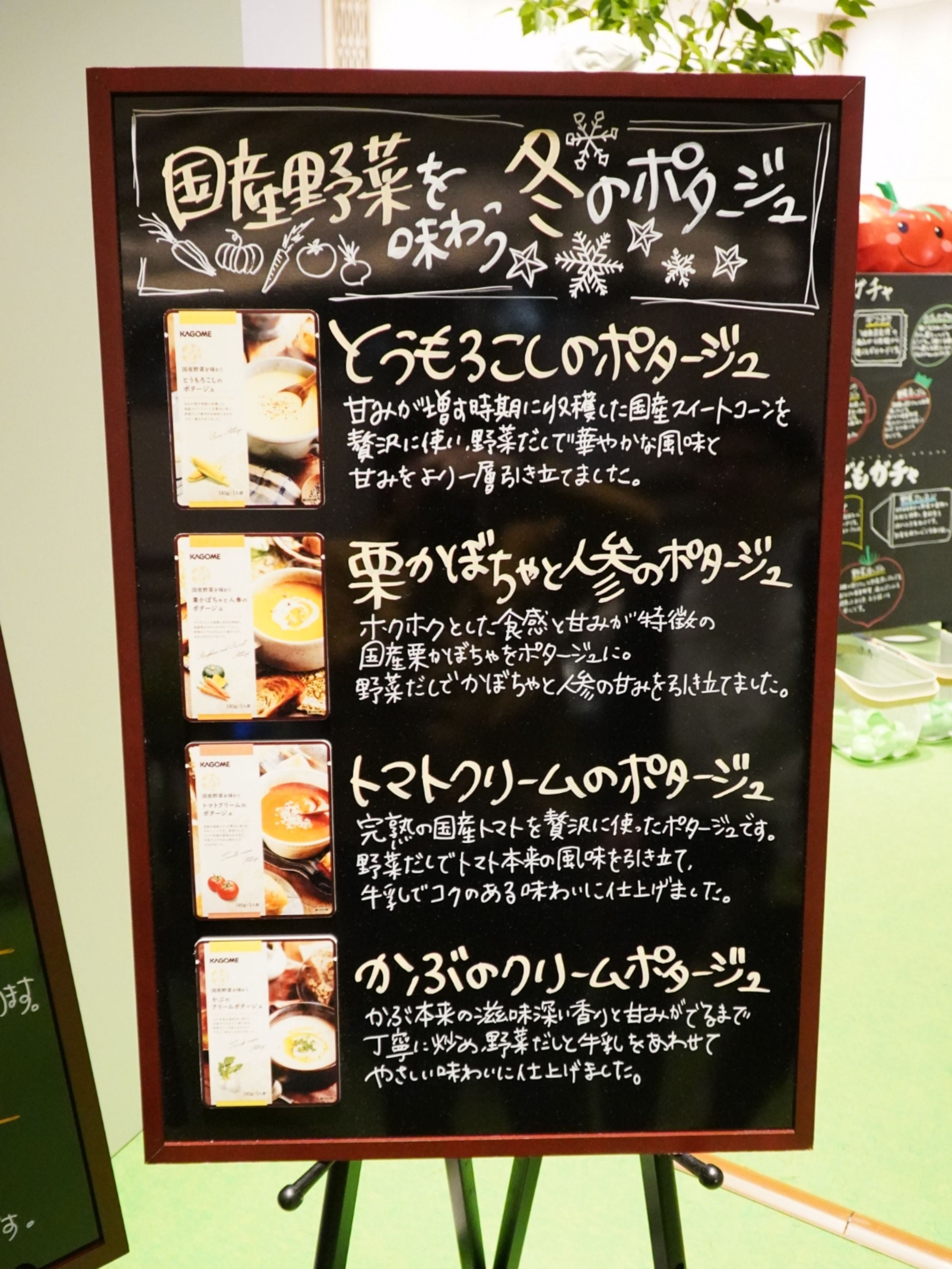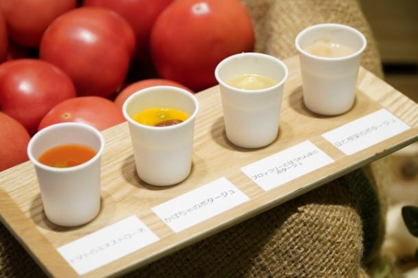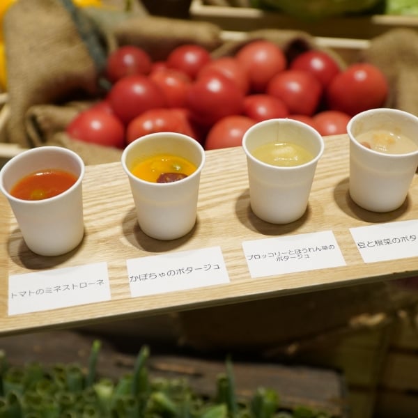 ビルの中に野菜農園をイメージした空間をつくり、カゴメのこだわりが詰まったカゴメ健康直送便の商品「つぶより野菜」や「野菜と豆の具だくさんポタージュ」「国産野菜を味わう 冬のポタージュ」を味わっていただきました!