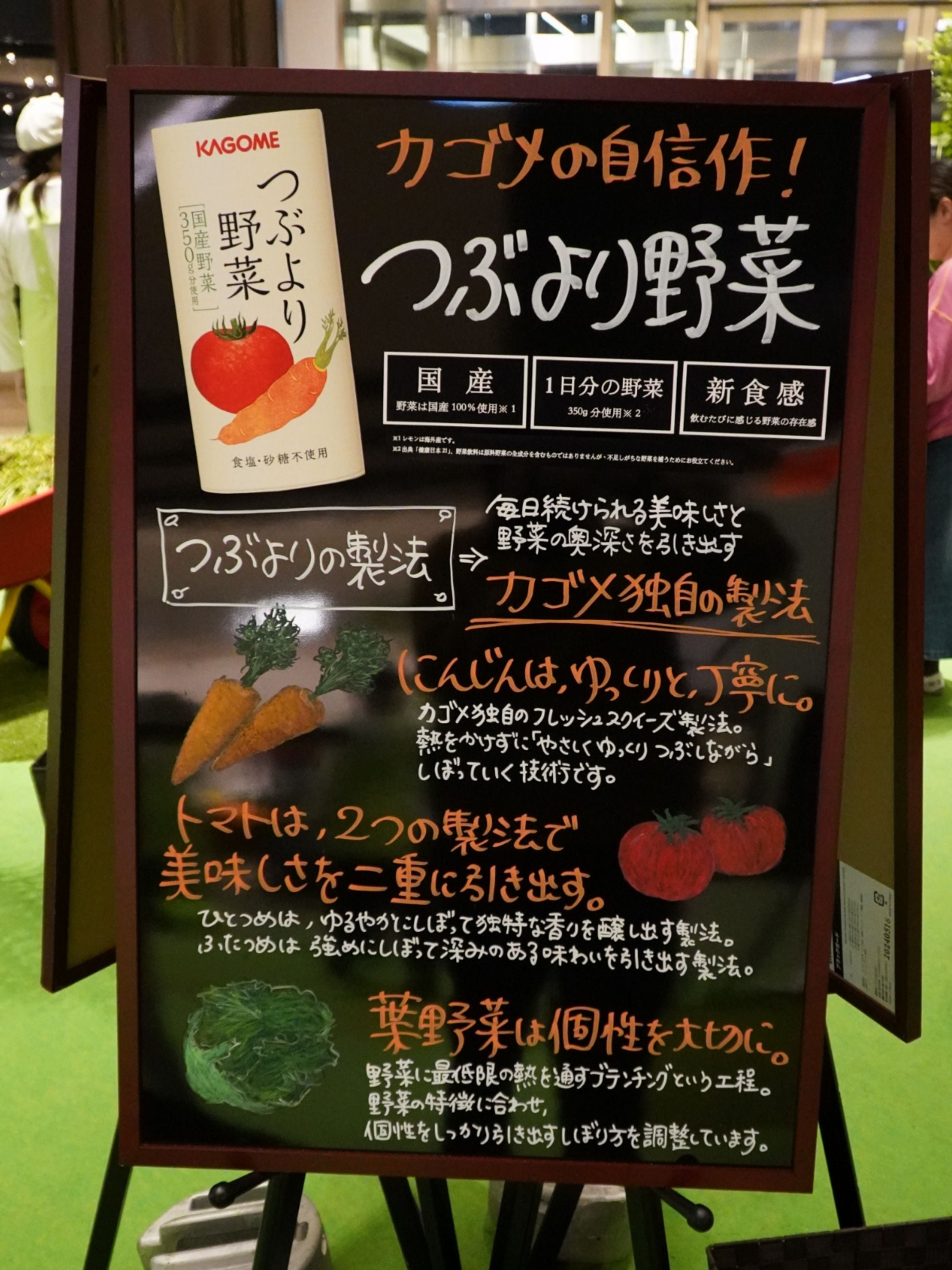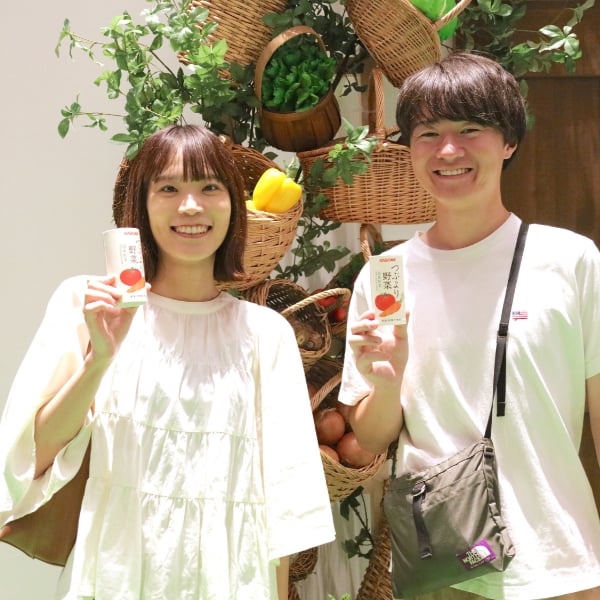 「つぶより野菜」を試飲されたお客さまからは「普段飲んでいる野菜ジュースとは全く違う」「元気がギュッと詰まっている感じがする」「甘くて飲みやすい」といった声を多くいただきました!