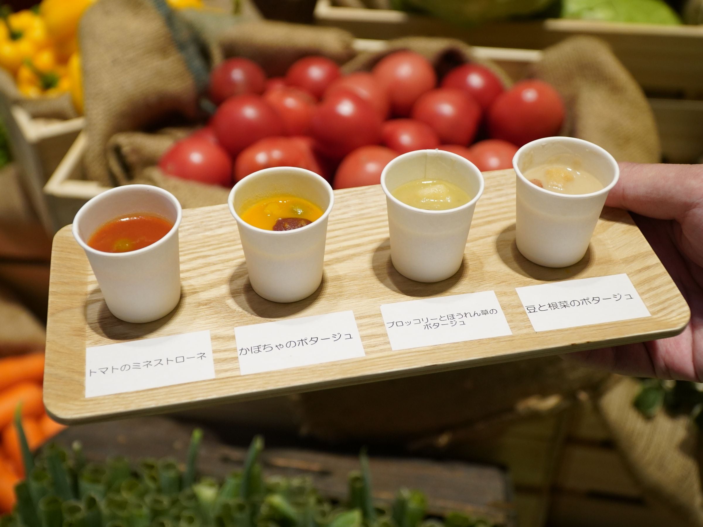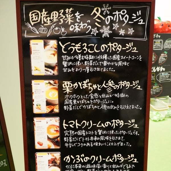 数量限定で行った「国産野菜を味わう 冬のポタージュ」のご試食は4種類を食べ比べてお好きな順にランクづけをしていただくものだったのですが、ご夫婦やお友だちでお気に入りの順番が全く違う結果になって驚いたという方もいらっしゃいました。