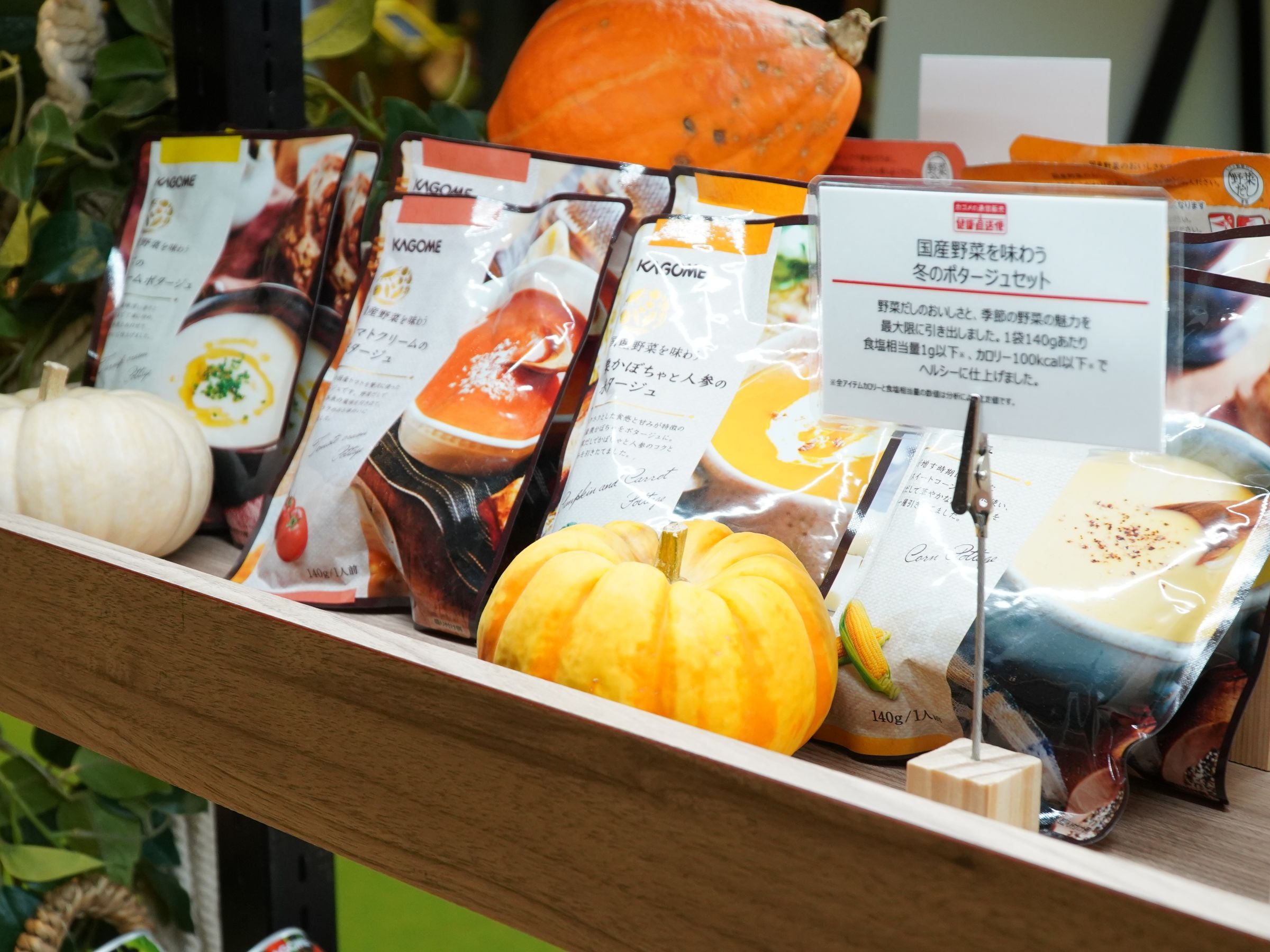 目指したのは、四季折々の国産野菜で季節を味わうポタージュ。季節ごとに使用する素材を変え、お届け時期を限定しています。もちろん繊細な味づくりと、健康への配慮も忘れません。冬の詰め合わせは「とうもろこし」「栗かぼちゃとにんじん」「トマト」「かぶ」の4種。