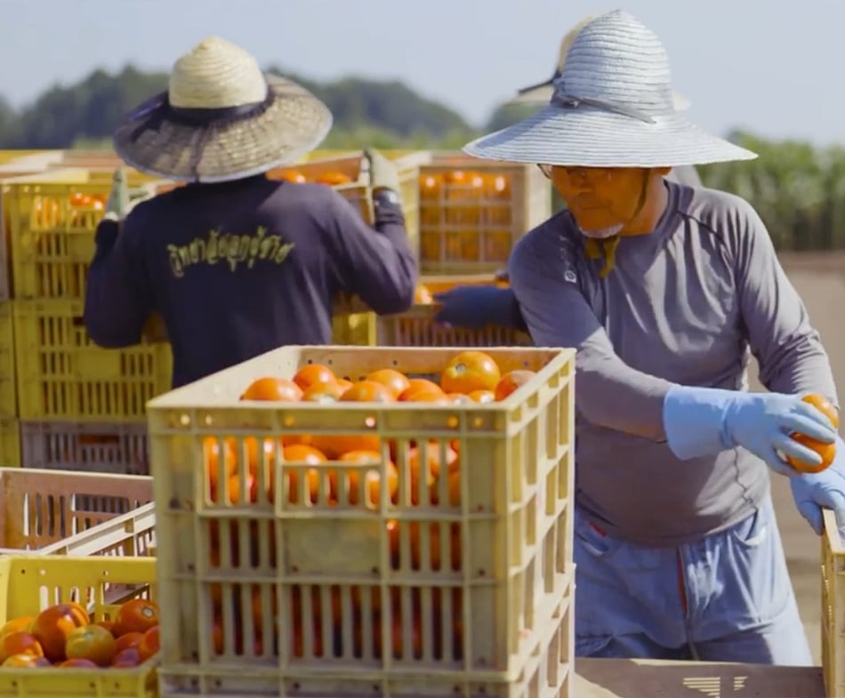 そんな畑と会社をつなぐ存在が「フィールドパーソン」と呼ばれるカゴメの社員たちです。彼らはいわば「農業のプロ」。彼らは定期的に契約した農家さんを訪れ、栽培の相談にのったり、ときには指導を行ったりしながら、原料の品質や収穫量をきちんと管理しています。顔を合わせて話を重ねることで信頼が深まり、安定した原料の確保へとつながっていきます。