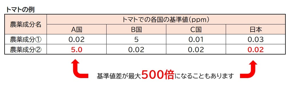 「農薬について考えるとき、特に注意が必要なのは『生産国と輸入国で基準値が異なる場合』です。各国で農薬の使用基準が違いますし、基準が変更される場合もあるため、輸入品にはリスクがあります。