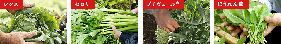 太陽の恵みをいっぱいに浴びたにんじん、土づくりからこだわり抜かれた真っ赤なトマト、そして、大地の滋養を吸い上げたほうれん草などの葉野菜。