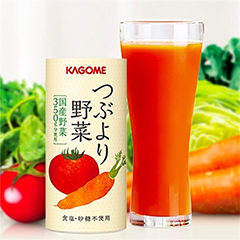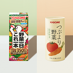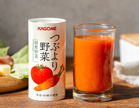 このように、6種類の野菜それぞれに異なる、カゴメ独自の製法で丁寧に搾汁することで、「つぶより野菜」は驚くほど濃厚で、野菜の甘みや旨味、そして香りを存分にお楽しみいただける、まさに「つぶよりのレシピ」が完成しました。