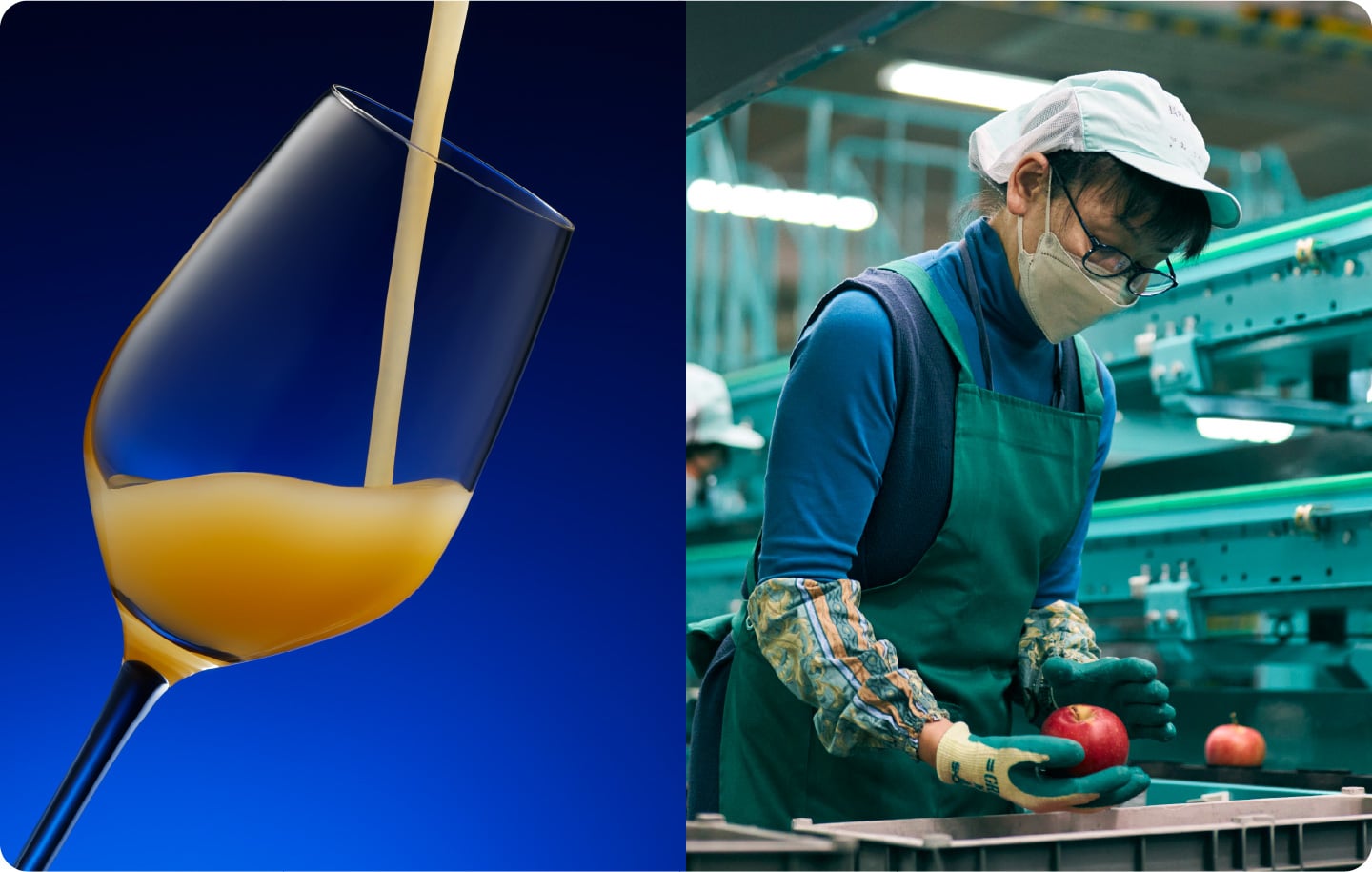 この危機に立ち向かい、青森りんごの歴史を未来へつなぎたい。そんな想いを形にするために、生産者、JAアオレン、そしてカゴメが力を合わせ、およそ2年の歳月をかけて生み出したのが「青の森の蜜」でした。