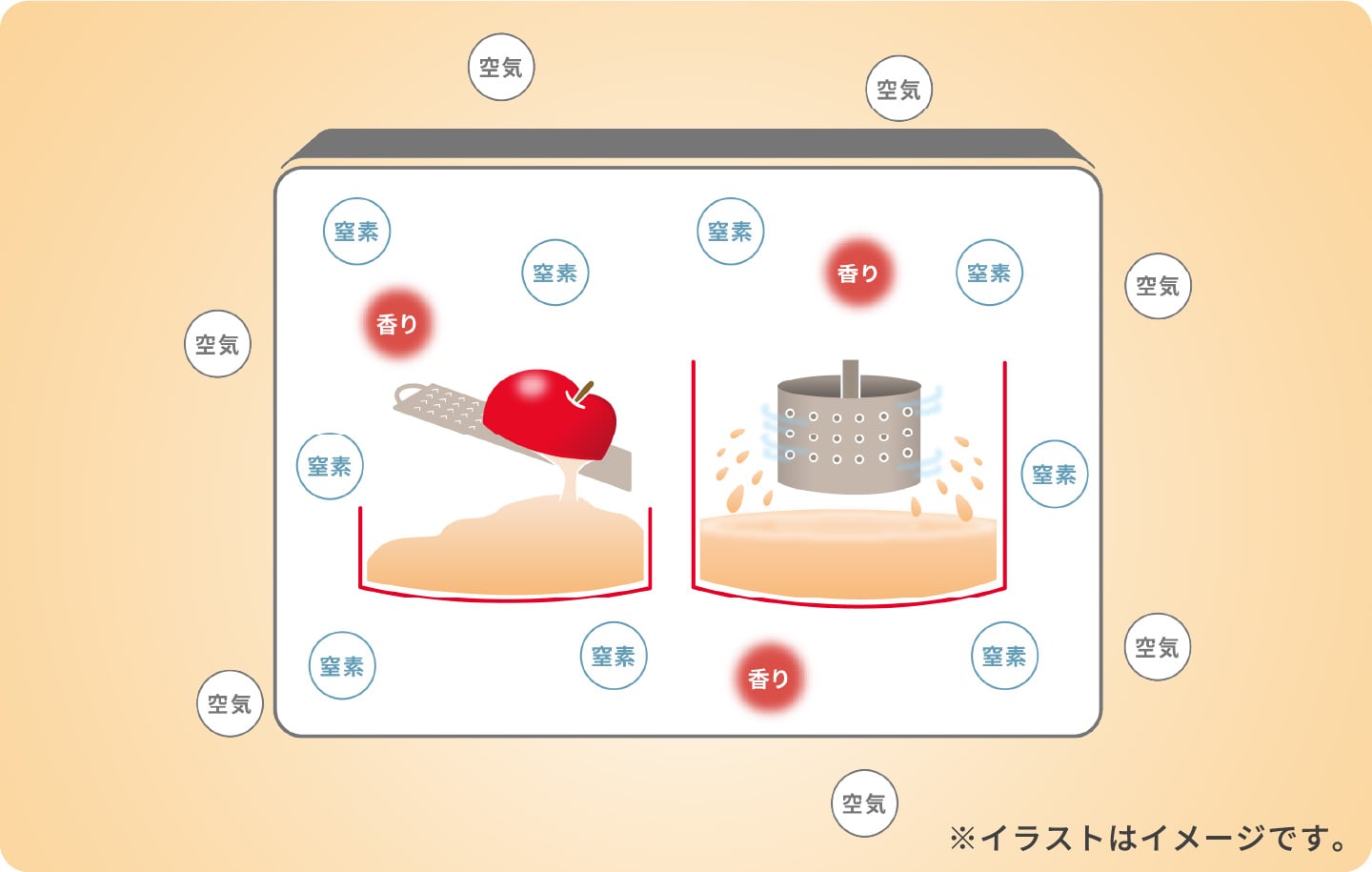 「りんごの果肉や果汁は、酸素に触れた瞬間から酸化が始まり、色や風味に影響を与えます。そこで、無酸素状態という特別な環境でりんごを搾る独自の搾汁方法を考案したのです」