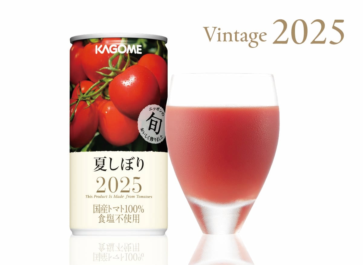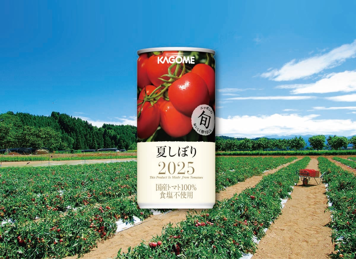 「“旬”の美味しさを閉じ込める『夏しぼり』の味わいは、できるだけトマトの果肉を押しつぶさず、丁寧に搾るカゴメ独自の[ゆるしぼり]製法によるものです。ゆるしぼり製法とは、すべてを搾り切らないことで雑味が出ず、“旬”の素材の持ち味を引き出せる特別な製法のこと。カゴメはこの製法を、『夏しぼり』が誕生した1996年から29年間変わることなく採用しています」。