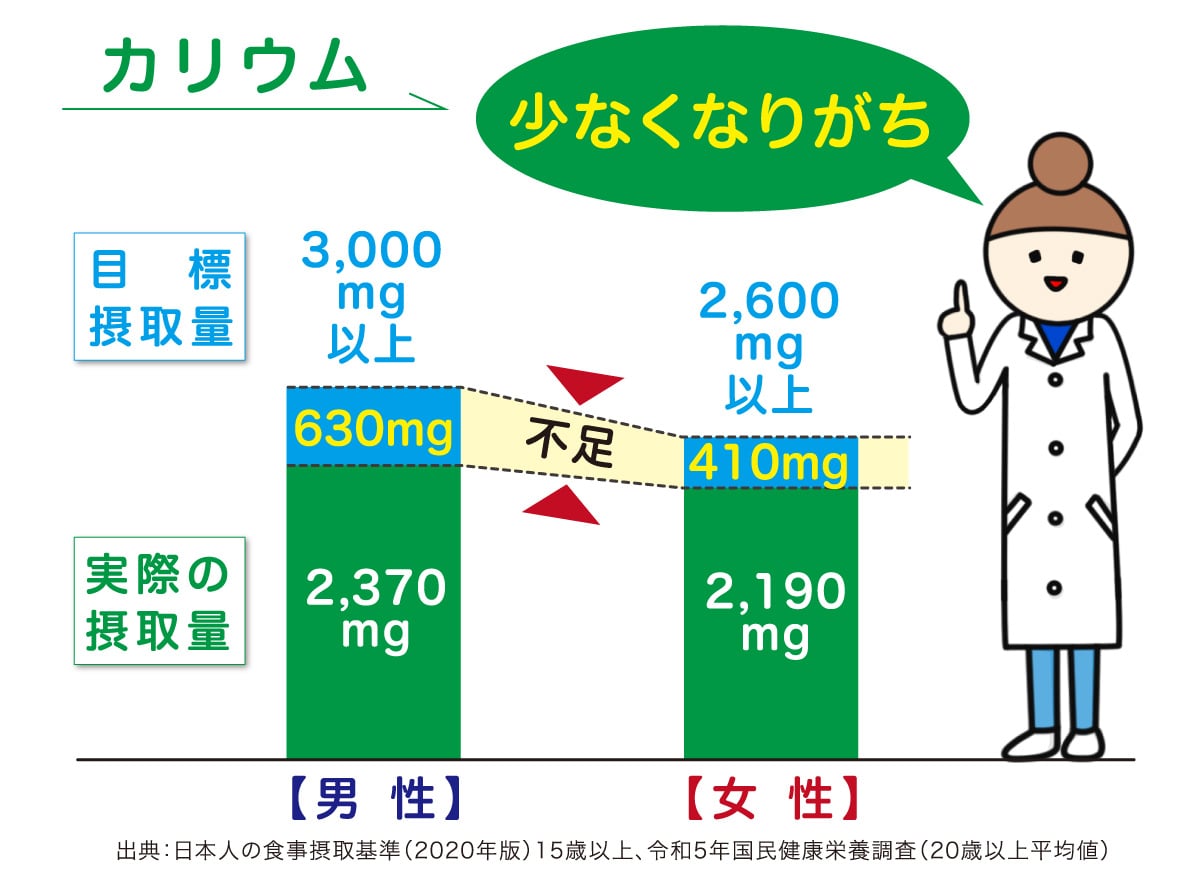 一方で〈カリウム〉摂取量は少なくなりがち。