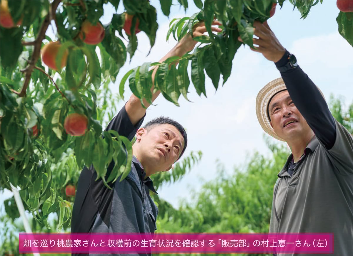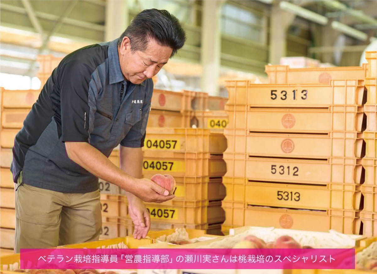 その他にも、桃農家さんに細やかに栽培指導を行う「営農指導部」や、最も良い状態で桃を市場に送り出す「販売部」など、ベテランの専門スタッフが在籍。彼らはまさに“桃のスペシャリスト”。桃に対する専門知識と、長年の経験に裏打ちされた知見をもって、常に地域の桃農家さんに寄り添って、〈あかつき〉の品質向上に汗を流しています。