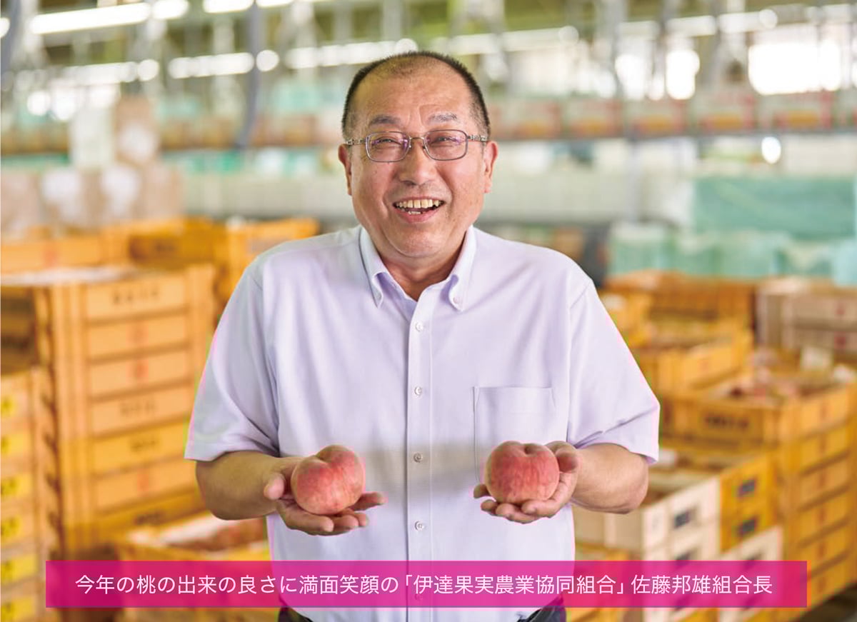 伊達果実には、現在120〜130軒の桃農家さんたちが組合に参加。そのすべての農家さんが〈あかつき〉をつくっているとのこと。伊達果実は生産者と消費者を繋ぐ架け橋として、栽培から出荷に至るまで、常に厳しく桃の品質管理を行っています。