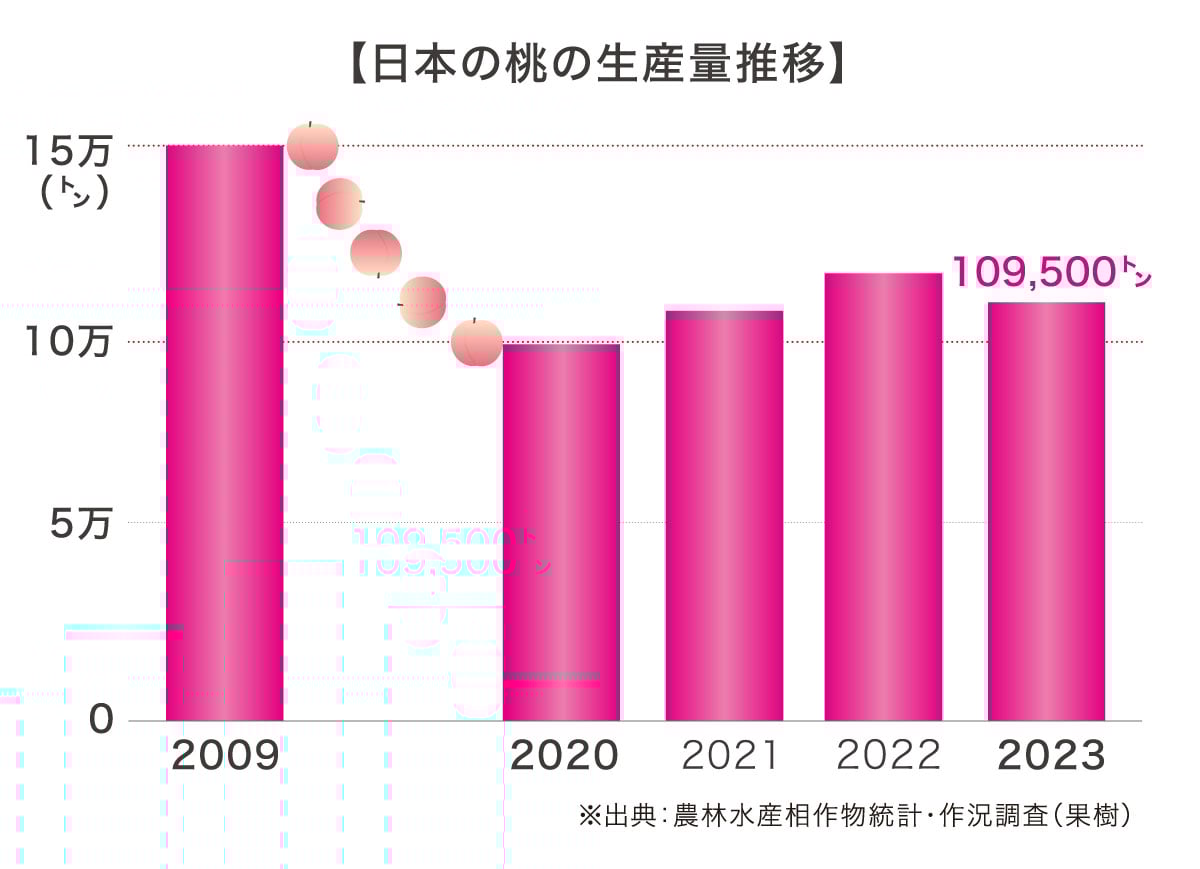 さらに、日本の桃の生産量も減少傾向に。