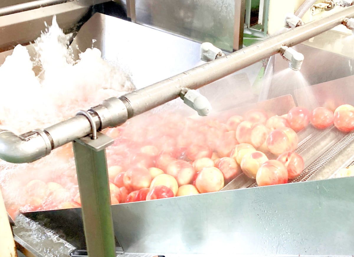 収穫された桃は、まず最初にシャワーを浴びてきれいに洗浄されます。桃の素材そのものの美味しさを搾るために、まずは果実についた余計なものをきれいサッパリ洗い流します。