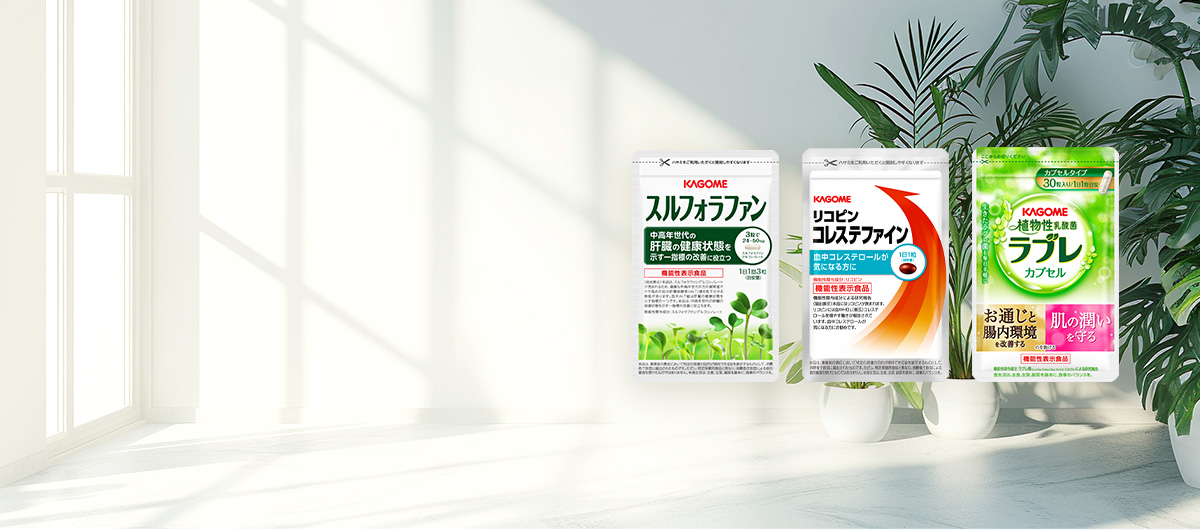 植物のチカラを活かしたカゴメのサプリメントを皆さまの生活の中でお役立ていただけますと幸いです。
