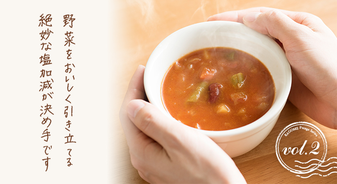 野菜そのものの味わいを引き立たせるために いい塩梅の塩を加えたら、このように仕上がったのです。