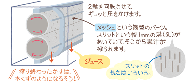 なんで100%ストレートジュースができるの?」と、不思議ではありませんか?実はこちらもカゴメが3年をかけて開発した搾りかた。