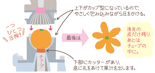 果肉を押しつぶさないので、やさしい味わいになるんです。