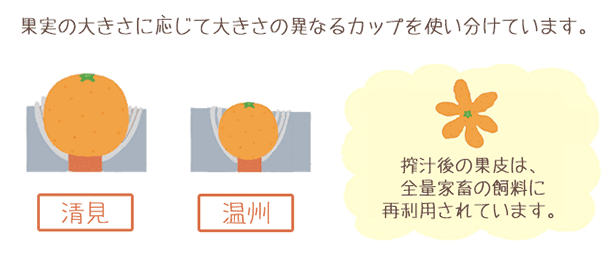 甘みと酸味が調和した柑橘類、でも、皮はちょっと苦い…。果皮の苦みが混ざらないように工夫されたこの方法では、なんと果実一つひとつを丁寧に搾っています。