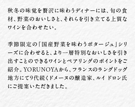 野菜の旨味がいつもの料理をご馳走に。お鍋など、冬の定番メニューとの相性も抜群