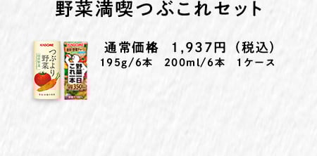 店頭で人気の「野菜一日これ一本」と通販で人気の「つぶより野菜」の飲み比べセット