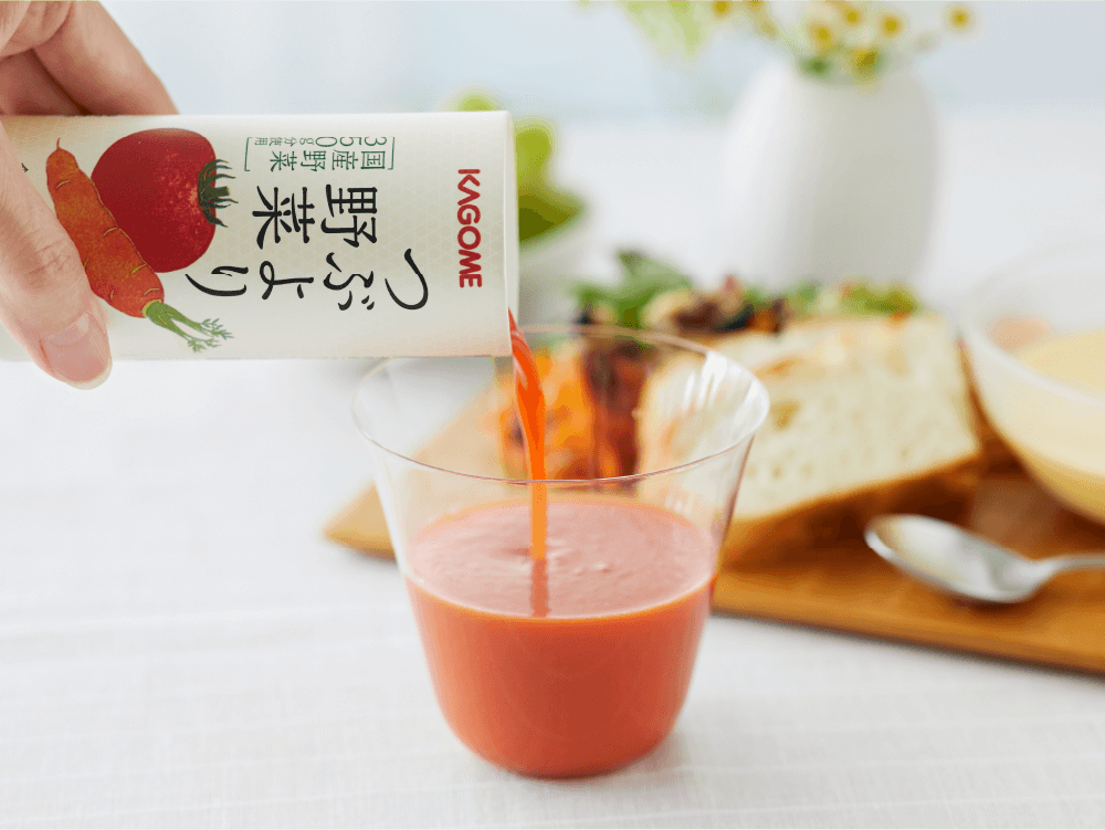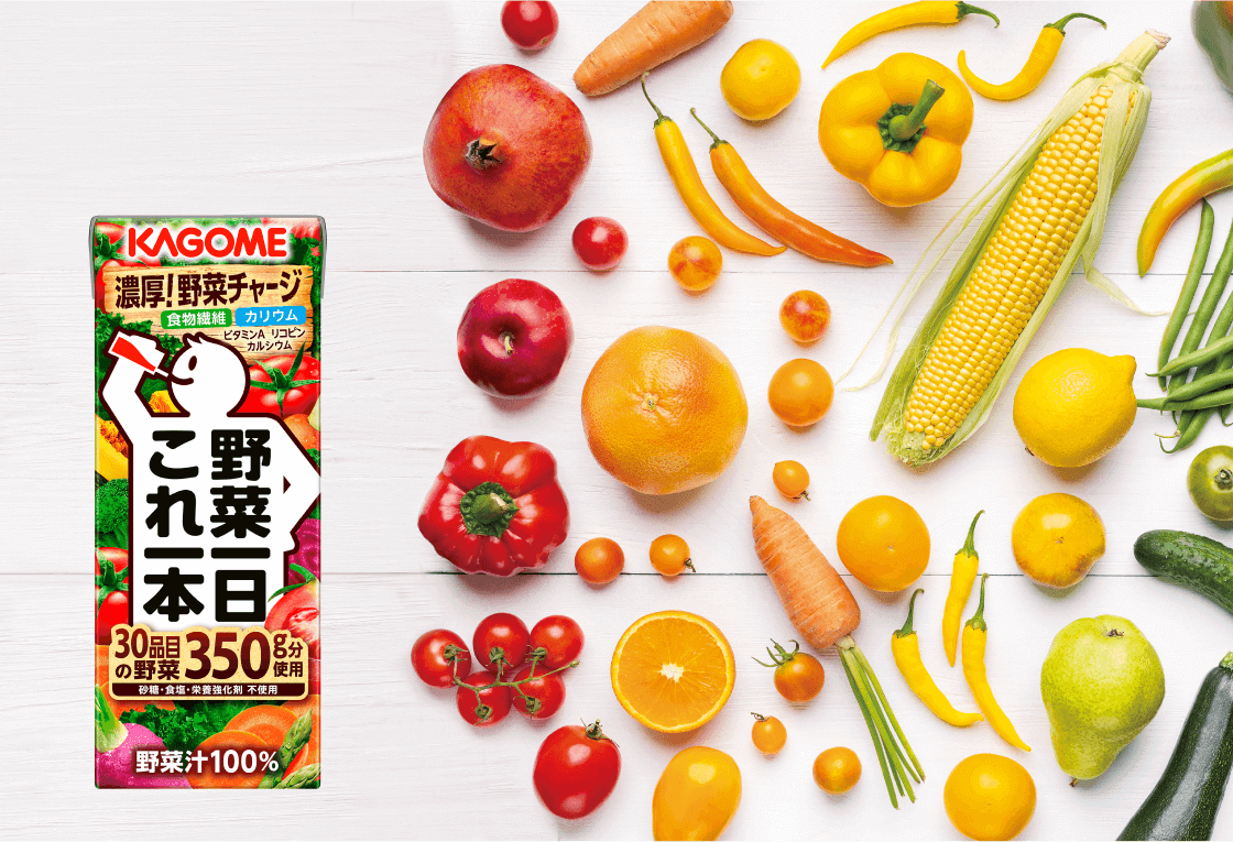 野菜に含まれるビタミン、ミネラル、食物繊維、リコピンなどが、健康的なカラダの維持に役立っていると、近年の研究で明らかになってきています。しかし、サンドイッチやおにぎりなど、忙しい時の軽食では、野菜をしっかり摂るのは難しい場合も。「野菜一日これ一本」は、そんな時不足しがちな栄養※を手軽に補ってくれます。