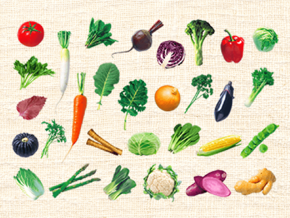 あらゆる野菜の中から、栄養※や味わいのバランスを考えて彩り豊かに厳選配合した30品目を使用しています。