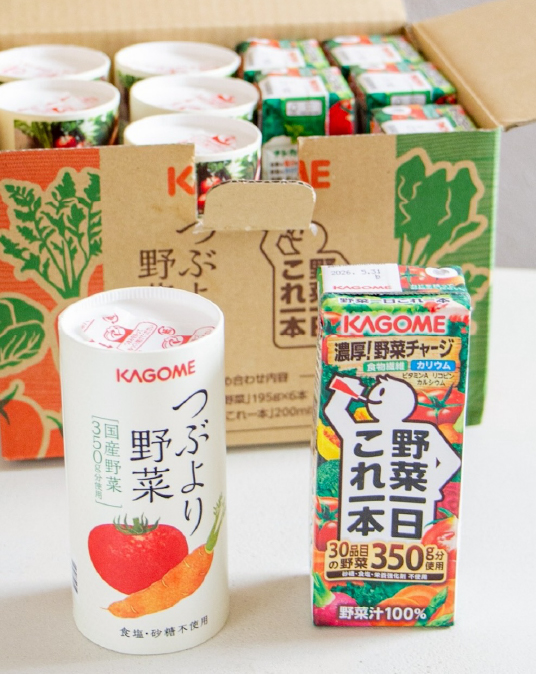 店頭で人気の「野菜一日これ一本」と通販で人気の「つぶより野菜」の飲み比べセット