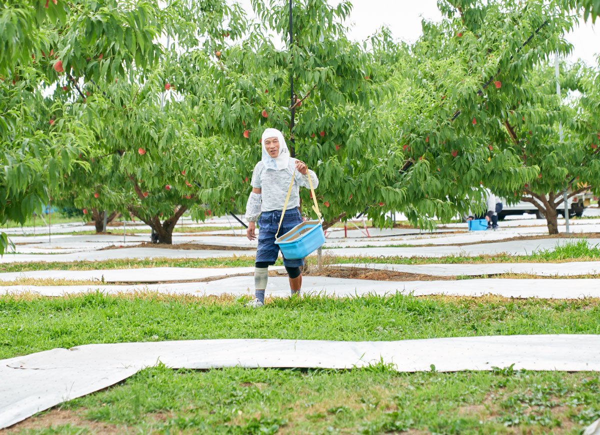 桃と言えば、山梨県や福島県、長野県や山形県あたりが産地として有名ですが、そんな中でもここ福島県の桑折町は、1994年から現在に至るまで、30年以上に亘って皇室に桃を献上し続けているという、知る人ぞ知る桃の名産地。日本でも珍しい果実専門の農協「伊達果実農業協同組合」では理事も務め、農協の誰もが認める桃の栽培名人として推薦されたのが亀岡さんでした。