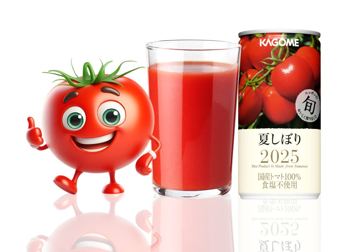 トマトジュースの中でも特に『夏しぼり』の場合、その年の夏に収穫された“旬”の完熟トマトを搾っているので、トマト自体の素材の味わいがしっかり感じられ、さらに後味はスッキリ爽やか。食中でも、食後でも、美味しく、楽しくお召し上がりいただけることと思います。